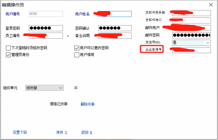 为了防止登录密码泄露被他人盗用登录电脑客户端,特申请了企业微信账号后,在主窗口脚本添加了企业微信收到登录提醒脚本 若官方能增加操作员绑定的微信登录提醒是最好,毕竟很多用户没有申请企业微信。 int main() { string uid,uid_name,WeChatId,Host_ip,Host_name,dlrq,dlsk; uid = get_user_id(); uid_name = get_user_name(): WeChatId=get_user_attr('WeChatId');//在操作员功能菜单下添加操作员扩展属性定义:WeChatId,操作员编辑界面的扩展属性定义窗口录入企业微信账号 Host_ip = get_ip(); Host_name = get_host_name(); dlrq = get_cur_date(); dlsk = get_cur_time(); if(WeChatId != '')//没有设置企业微信号的操作员不发送登录提醒,避免登陆后报错 { send_qywx_msg(WeChatId,'亲爱的:【'+uid+'】,【'+uid_name+'】用户,您的账号于【'+dlrq+'】【'+dlsk+'】在IP【'+Host_ip+'】电脑名【'+Host_name+'】登录,若非本人登录,请尽快登录系统修改密码!'); }; else { msg('您还没有加入企业微信或关注企业微信的公众号,无法给您发送登录信息提醒,若有需要,请联系管理员!'); }; return 1; }; |