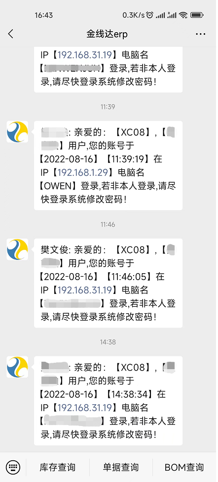 原创_客户端登录后企业微信端收到登录提醒脚本_使用经验
