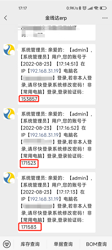 最新版本更新了rand函数,测试了10次,每次都是随机产生不同的5位数验证码,不会再像之前每次异地登录收到的都是相同的验证码了!随机码+登录6位登录时刻产生的6位数验证码就更安全了,每次的登录验证码怎么都不会被盲猜出来了。完全确保了异地登录安全。如果有必要,可以设置所有账户(或者拥有相关角色权限的账户)每次登录都要输入登录验证码!这样即使密码泄露也能确保登录安全。 |