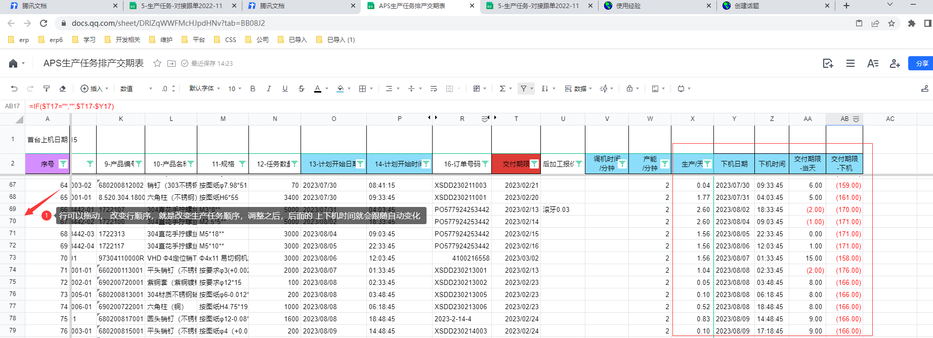 2 excel表格公式,也方便随时调整生产任务顺序,分析任务变换之后交期变化