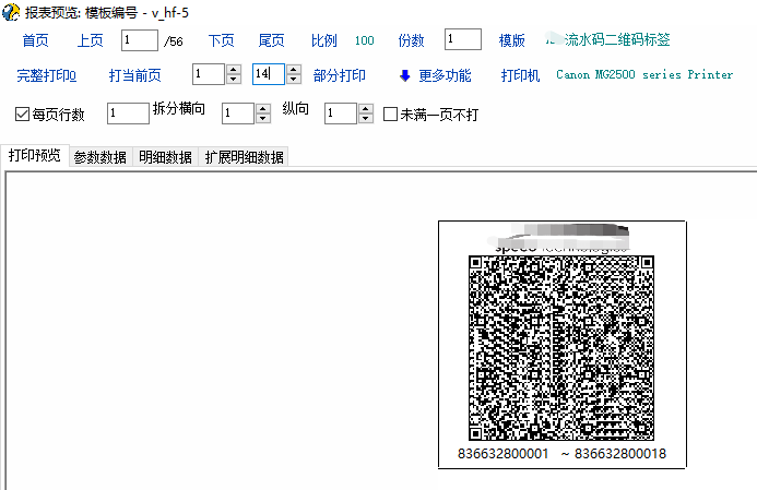 有客户的外箱流水码要求从条形码改为二维码,每个成品一个流水码(12位),前4位为固定的的供方代码,第5位为年份简码,6-7位为生产周,后5位为流水号,每张二维码标签最多包含100个流水码,不同PO同一时间出货的,流水码不能相同,目前只有每箱100PCS以下的订单,所以根据这些条件,启用了一个自定义单据来做外箱标签,用脚本来自动生成所有流水码 目前的脚本只限于每箱<=100PCS的包装数量,超过这个包装数量的脚本需要修改根据指定行复制行内容的条件 脚本思路: 1.启用一个单据类型【HF】的自定义单据,不影响库存,引用【BA】销售订单,表头只显示客户,启用5个表头扩展属性,用来记录【每箱数量,合计箱数,订单数量,前7位流水码,流水码开始】等数值 2.根据表头的客户来判断是否需要生成流水码(有其他客户只打印箱号,不需要流水码) 3.引用销售订单明细数据,销售订单明细有包含【产品编号,订单数量,每箱数量,总箱数,尾数箱数量】等数值 4.根据每箱一个外箱二维码标签的条件(每箱数量超过100就需要多张,暂不支持),每箱一行明细,依据总箱数复制第一行的数据到N行 5.引用过来数据复制行数据完成后保存单据,在保存单据的时候来生成所有流水码 6.添加3个明细扩展列:【lsm,lshks,lshjs】分别为:【流水码前缀(窗口输入,限定7位数),流水号开始(首行窗口输入,脚本行循环赋值),流水号结束(脚本行循环赋值)】 7.根据每张二维码标签最多包含100个流水码的条件,添加101个明细扩展列,命名:lsh+3位序号,从lsh001-lsh101【测试ok后,这些明细扩展列可以不用显示出来】 8.根据每箱数量结合第一个流水码先生成【流水码开始】,【流水码结束】,第一列【流水码】的数据 9.根据列循环开始的列号结合每箱数量来循环生成剩下的流水码数据 10.在打印模板用脚本生成二维码数据,每个流水码之间加上回车字符 单据脚本节选(部分): int func_show() { gui_hide("SpeedButton_Print") int xx,yy,ww,hh,; xx=gui_get_x("SpeedButton_Print") //【打印】横向坐标 yy=gui_get_y("SpeedButton_Print") //【打印】控件纵向坐标 ww=gui_get_w("SpeedButton_Print") //【打印】控件宽度 hh=gui_get_h("SpeedButton_Print") //【打印】控件高度 gui_create_speedbutton("ScrollBox_Func_Left","HF_print",xx,yy,ww,hh,"打印","call_csp.voucher.HF.HF_print"); gui_set_hint ("HF_print", '提示:按照客户匹配打印模板'); gui_set_font_color('HF_print',16711680); gui_set_font_color("HF_print",16711680); gui_disable("edit_Ext1") gui_disable("edit_Ext2") gui_disable("edit_Ext3") gui_disable("edit_Ext4") gui_disable("edit_Ext5") gui_set_font_color('edit_Ext1',16711680); gui_set_font_color("lab_Ext1",16711680); gui_set_font_color('edit_Ext2',16711680); gui_set_font_color("lab_Ext2",16711680); gui_set_font_color('edit_Ext3',16711680); gui_set_font_color("lab_Ext3",16711680); gui_set_font_color('edit_Ext4',0x0000ff); gui_set_font_color("lab_Ext4",0x0000ff); gui_set_font_color('edit_Ext5',0x0000ff); gui_set_font_color("lab_Ext5",0x0000ff); string m_kh; m_kh = gui_get_val("ComboBox_Ext_Eba_Id"); if(m_kh != 'A0004') { gui_hide("edit_Ext1") gui_hide("lab_Ext1") gui_hide("edit_Ext2") gui_hide("lab_Ext2") gui_hide("edit_Ext3") gui_hide("lab_Ext3") gui_hide("edit_Ext4") gui_hide("lab_Ext4") gui_hide("edit_Ext5") gui_hide("lab_Ext5") }; if(m_kh == 'A0004') { gui_show("edit_Ext1") gui_show("lab_Ext1") gui_show("edit_Ext2") gui_show("lab_Ext2") gui_show("edit_Ext3") gui_show("lab_Ext3") gui_show("edit_Ext4") gui_show("lab_Ext4") gui_show("edit_Ext5") gui_show("lab_Ext5") }; return 1; }; int 按箱数复制行() { int i,rc; string v_ddsl,v_lsm,v_item,v_id; rc = grid_get_v("MG_Item","vr_item_ext_4",1,);//获取首行【明细自定义4】列数据(总箱数) v_item = grid_get_v("MG_Item","vr_item_ext_4",2,);//获取第二行【明细自定义4】列数据(总箱数) v_ddsl = grid_get_v("MG_Item","inp_num",1);//获取首行【数量】列数据 v_lsm = grid_get_v("MG_Item","lsm",1); //获取首行【流水码前7位】列数据(弹窗输入) if(v_item == '') //当第二行为空时,根据【总箱数】补齐明细行数据(每箱一行数据打印一张二维码流水号标签) { for(i=1;i<rc;i++); { if(v_lsm != '') //当【流水码前7位】列数据不为空时根据第一行新增明细行数据,避免漏输入【流水码前7位】后还执行复制行操作 { grid_insert_before('MG_Item',i+1) //在指定行前插入一行记录 grid_copy_row("MG_Item",i,i+1);//复制行内容 grid_set_v('MG_Item','inp_num',i,v_ddsl); //最后一行有时其他列数据没有被复制成功,这里从第一行再赋值一次补齐数据避免尾数箱流水号生成失败 grid_set_v('MG_Item','vr_item_ext_4',i,rc);//最后一行有时其他列数据没有被复制成功,这里从第一行再赋值一次补齐数据避免尾数箱流水号生成失败 grid_set_v('MG_Item','lsm',i,v_lsm);//最后一行有时其他列数据没有被复制成功,这里从第一行再赋值一次补齐数据避免尾数箱流水号生成失败 }; }; }; //can_print=1; return 1; }; int 流水号生成() { //按流水号开始数值生成流水码 int i,rc,j,k,count; string v_mxsl,v_lsm,gwlsh,gwlshs,swlsh,swlshs,bwlsh,bwlshs,m_lshks,m_lshjs,v_zxs,v_ddsl,mmxsl,v_lshcsz,v_lshcszss; num v_mxsl,v_lshks,v_lshjs,v_lshkss,v_lshjss,v_mxsls,v_lshcsz,v_lshcszs,v_lshcszss,v_ddsl,v_lshjssh; //输入流水号开始数值 string m_kh; m_kh = gui_get_val("ComboBox_Ext_Eba_Id"); //获取客户编号 if(m_kh == 'A0004') //只有这个编号的客户需要外箱二维码流水贴纸 { inp_clear(); inp_para_set_title('请输入【流水号开始序号】') inp_def_string('mnum','流水号开始序号:'); inp_para() num inp_num; inp_num=inp_get_val('mnum') user_para_set("lsh",inp_num) if(inp_num == '') { msg('【流水号开