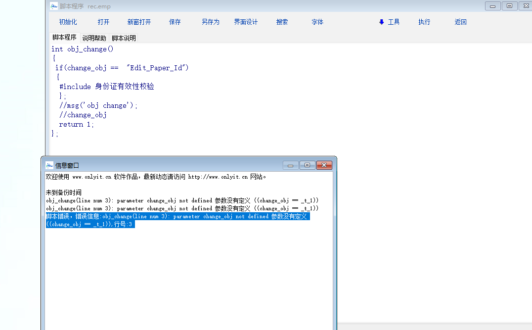 试了两个版本, 最新的2023-08-02版本报错,(脚本错误,错误信息:obj_change(line num 3): parameter change_obj not defined 参数没有定义 ((change_obj == _t_1)),行号:3 ) 随意下载了个2022-10-20版本没有问题,正常运行 |