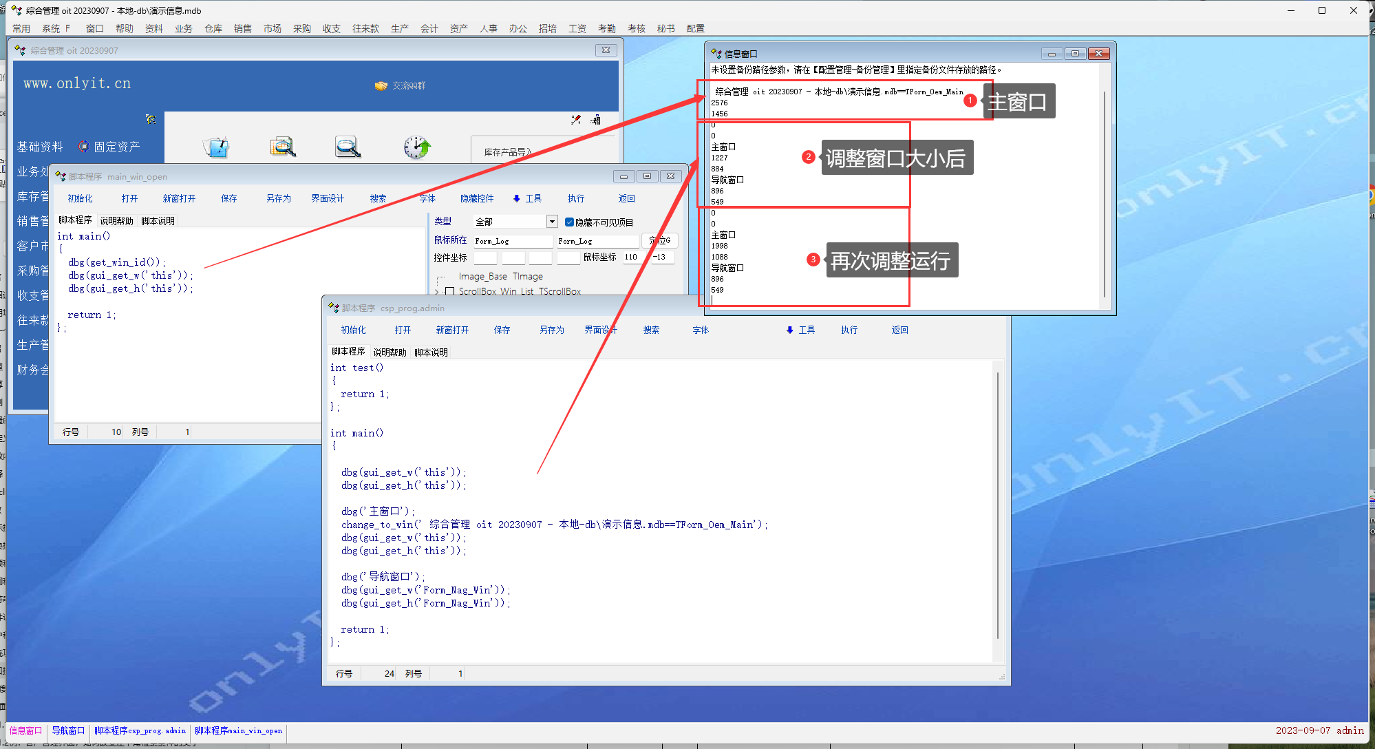 一是想通过 oit 自身的窗体大小来调整,但用下面的代码,只能获取为0