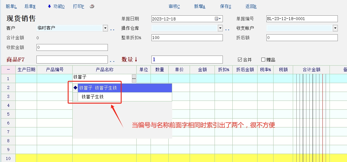 产品编号与产品名称相同时索出两个产品,客户与供应商也一样编号与名称一样出现两个,由于录入的产品比较多改产品编号不现实,希望官方改善下这个索引功能。如下图