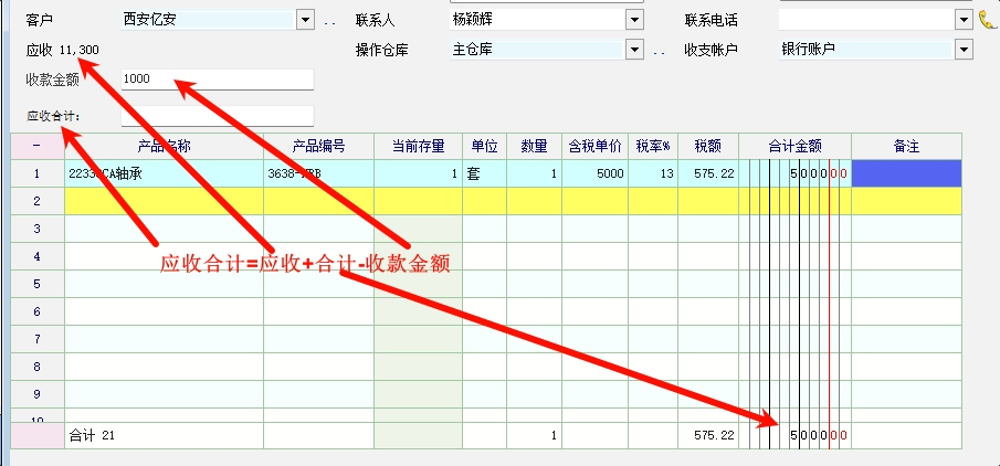 在销售单表头启用了1个附件属性:应收合计,系统目前只支持显示以前应收金额,这次的收款金额,比如新建单据明细合计是5000,收款是1000,那么这次欠款是4000,加上以前的欠款比如是10000,那么总应收合计是14000,请问新建的应收合计如何才能自动计算出结果