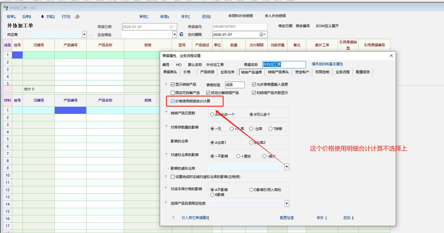 产品资料里设置了参考进价为1元,在外协生产单里没填数量之前显示的价格为1元,一旦填了数量,单价就变成了需领料的毛坯价格。这是什么原因?是哪里没设置好吗