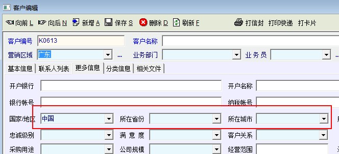 这里倒建议默认设置为上次的值,因为客户的地域(国籍、省份、城市)好多都是相同的,尤其是一些经营地域不广的商家更是如此。好多人的客户都只局限于某一国家、省份,甚至是某一城市。