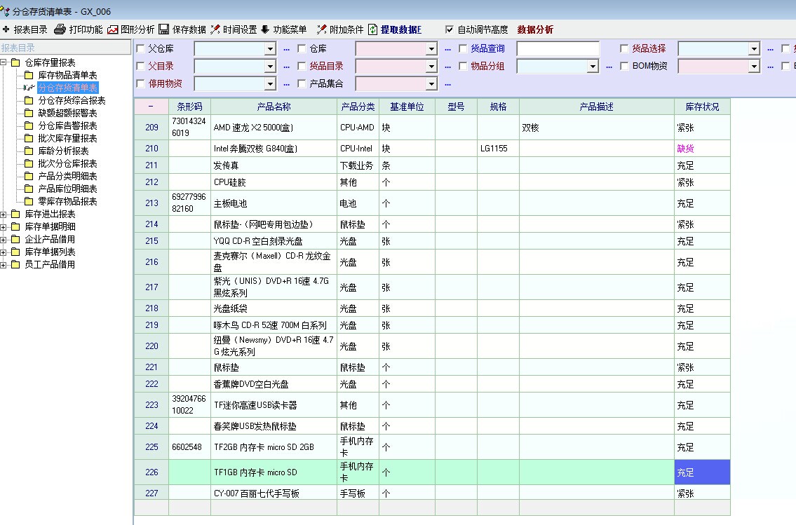 | 学习交流 » 使用经验 »库存报表根据不同的值显示“缺货”,“紧张”和“充足”,并且用不同的颜色显示。