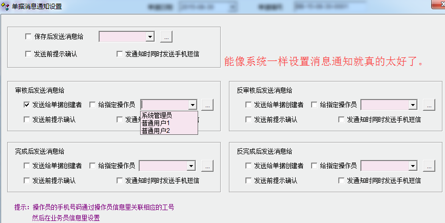 如果能像系统一样弹窗显示并自动提取操作员列表,进行多选,那就真的太好了。ayangzhi可否接力改进一下,实现弹窗选取功能,我的能力不行,连个头绪都没有,只能实现一些比较简单的功能。也建议老师将消息通知作为一个独立功能模块放到系统中,可以通过比较简单的脚本进行引用,那一定为系统添加不少分数! |