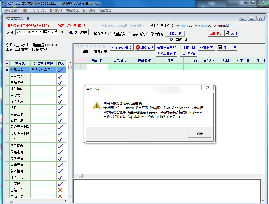 我用想批量导入产品,是不是在库存资料导入模板里面填上相关的产品编号、目录编号。。。这个些内容再在产品资料管理=》功能菜单=》自由式导入产品,我这样操作出现了这个问题,请大吓细解!!!