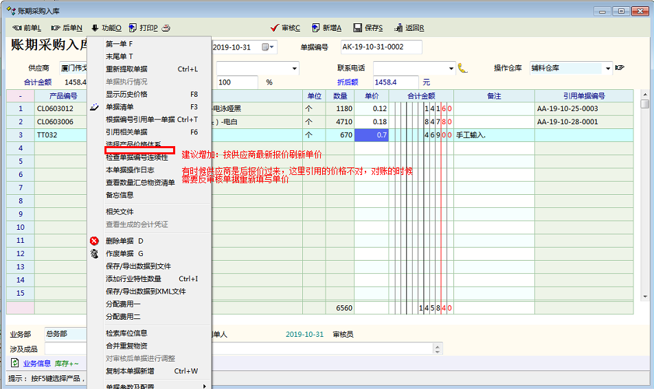 推荐_建议--物资单据增加“按供应商最新报价刷新单价” 功能_使用经验