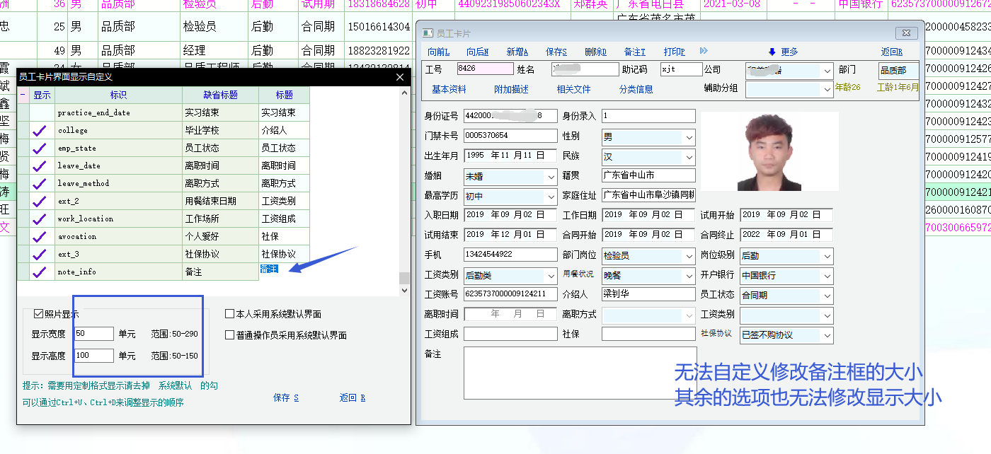 能否更新可以将员工卡片界面设置自定义各项目显示的宽度和高度?