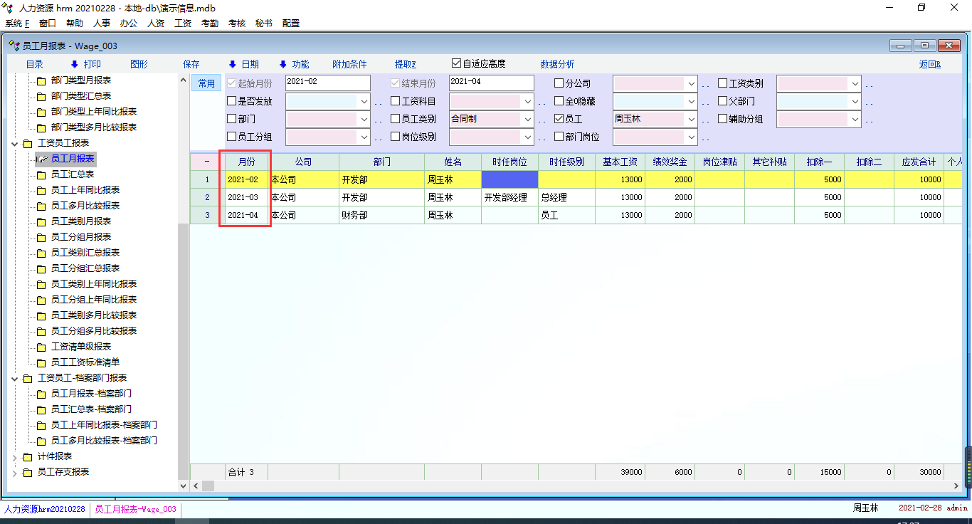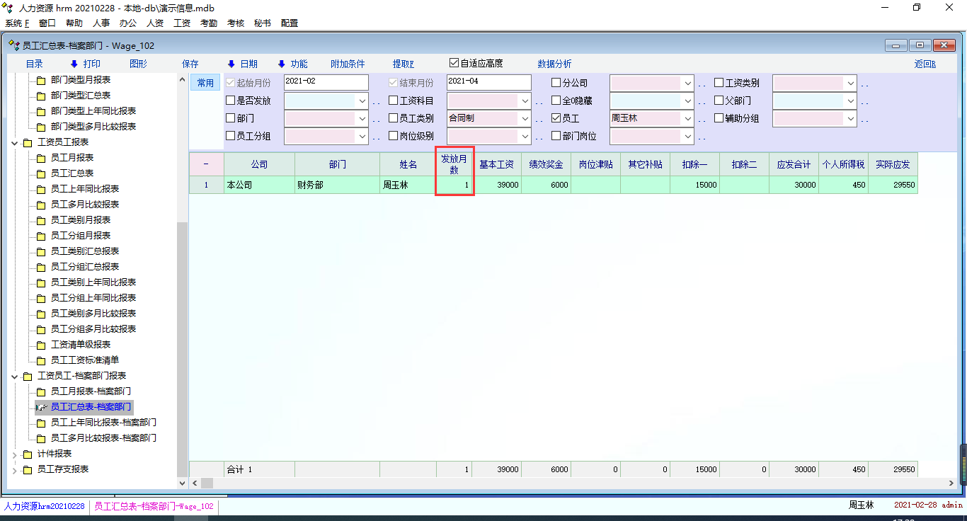 当员工调岗后,在工资报表中的“员工汇总表-档案部门”统计数据中,【发放月数】这项的数据只统计调岗之后的发放月数,调岗之前的没有统计,如何能正确统计数据?
