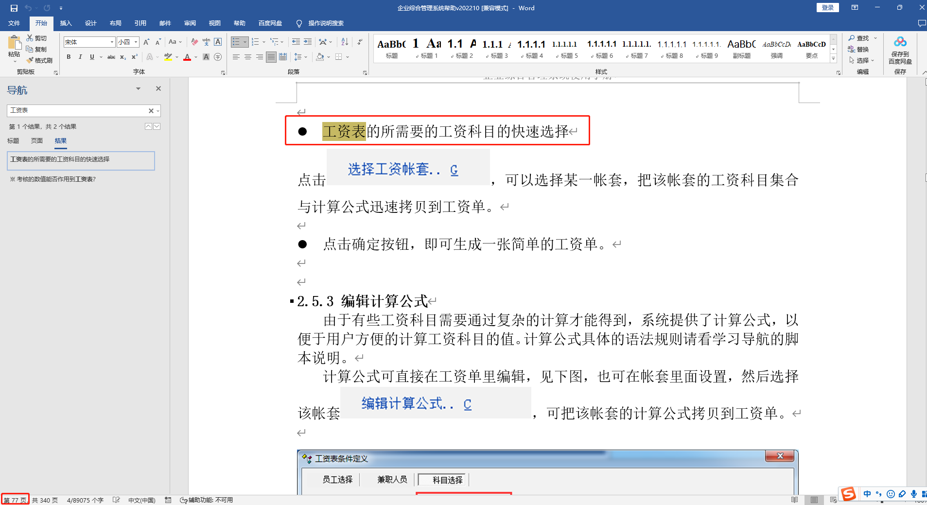 工资表说明在第77页