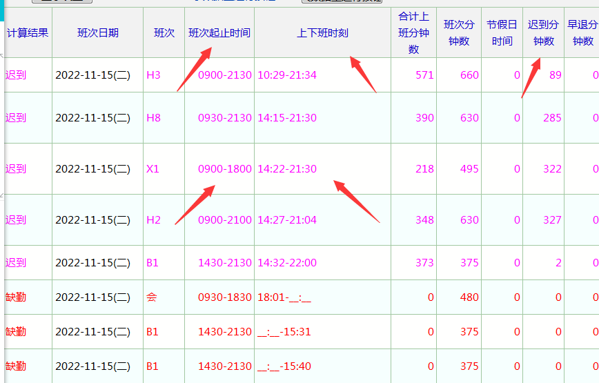 有的企业因为班次很多,排错了班次,但是负责考勤的人员因为没有排班的班次时间与实际打卡时间能够一目了然的进行对比,所以不能够及时发现排班错误。所以考勤日帐里面能否添加特班次起止时间,用于日帐里面一目了然判断是否排班错误