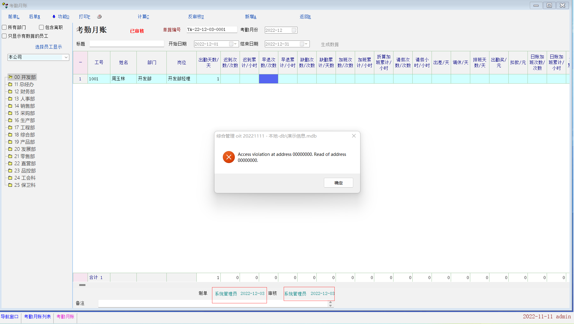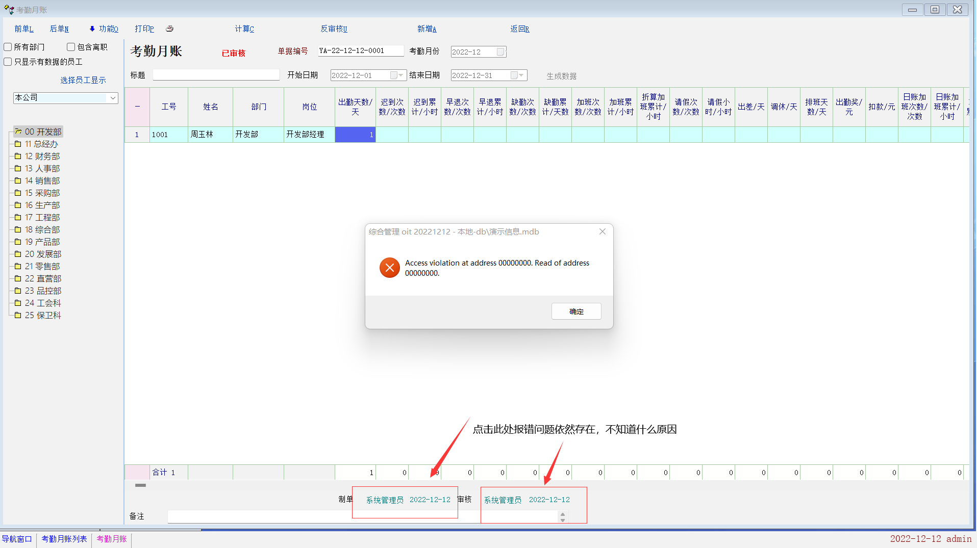 考勤月账(制单/审核)处报错依然存在,不知道什么原因