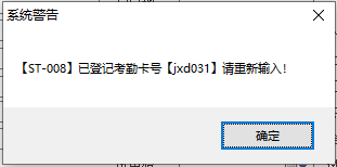 warn('【'+db_res(0)+'】已登记考勤卡号【'+cardno+'】请重新输入!')