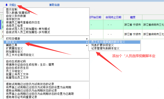原创_员工选择界面添加脚本功能_人力资产
