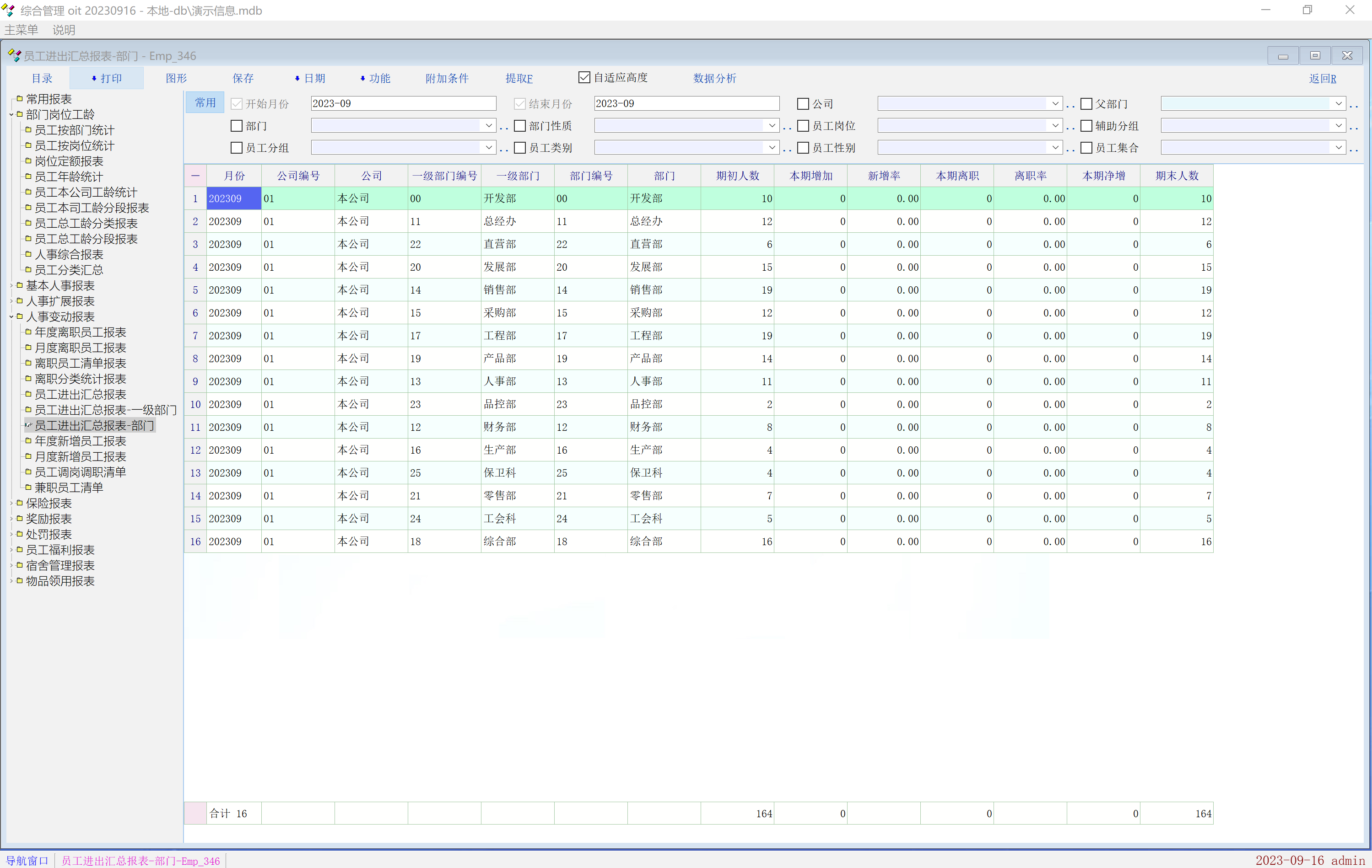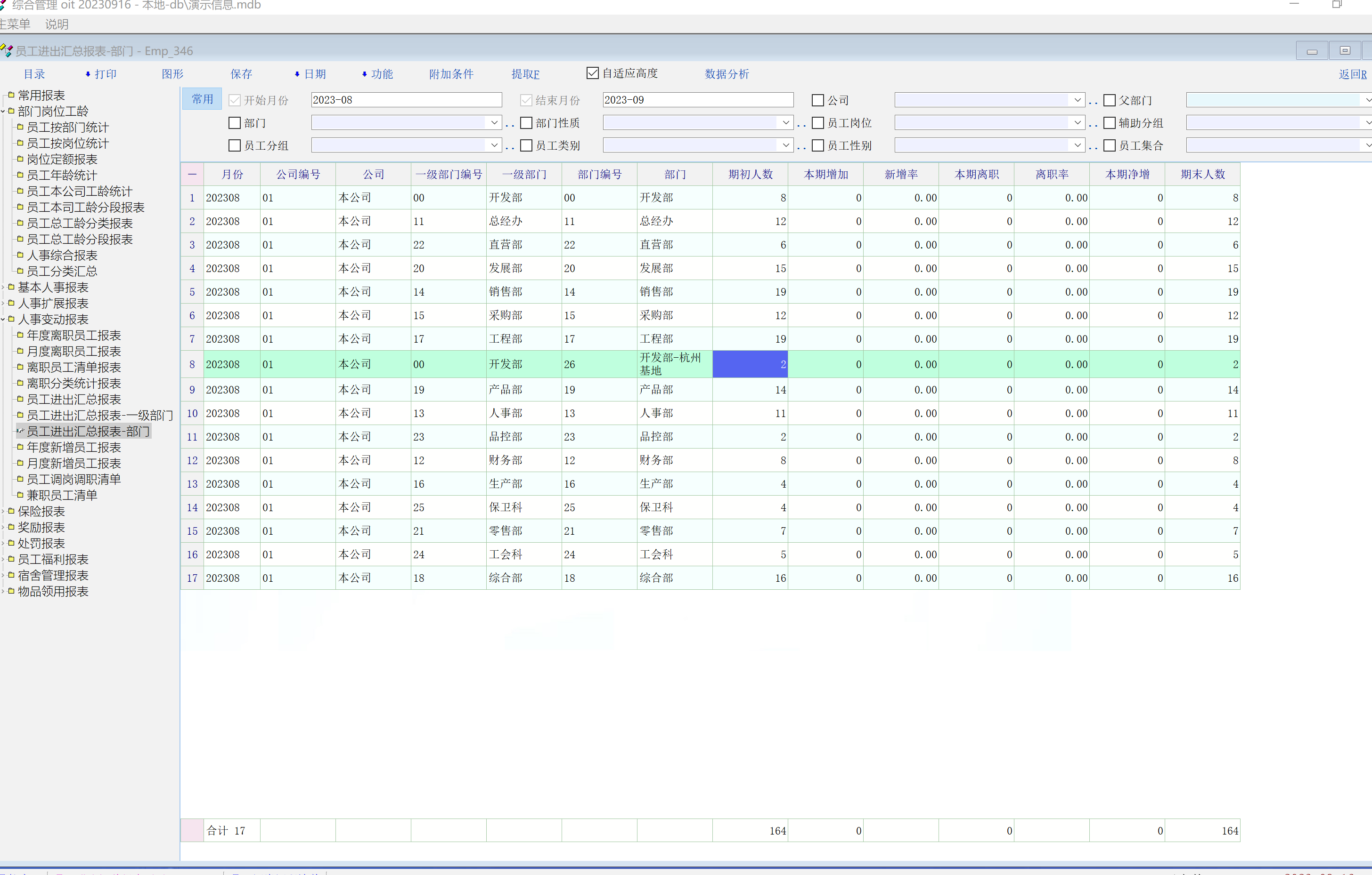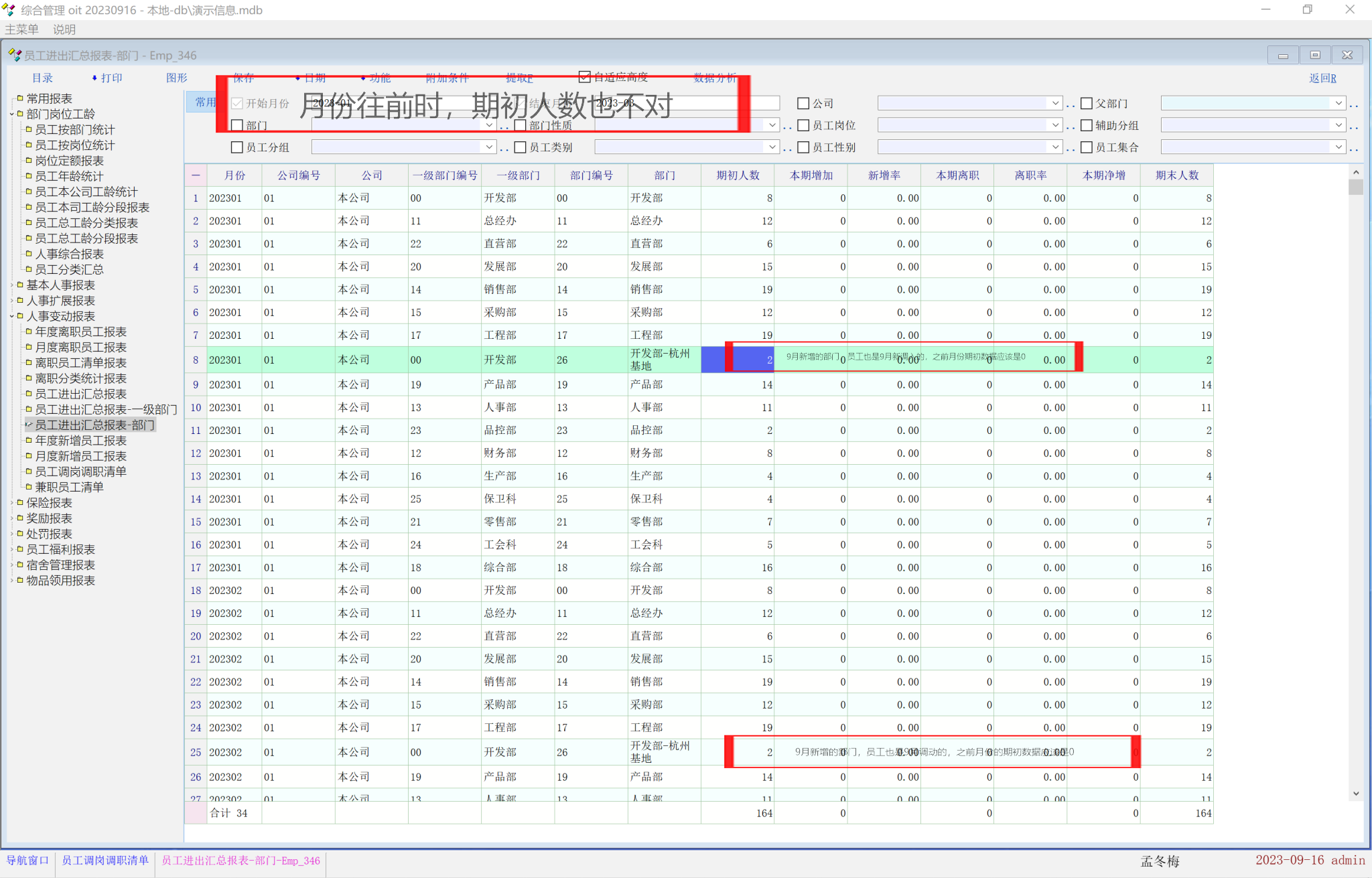 报表期初数据不对 也没有涵盖异动人员 只能统计离职的员工  烦请老师优化!既然是部门员工进出报表 只统计离职的员工 不是太合理  也满足不了实际工作中的需要!如下图: