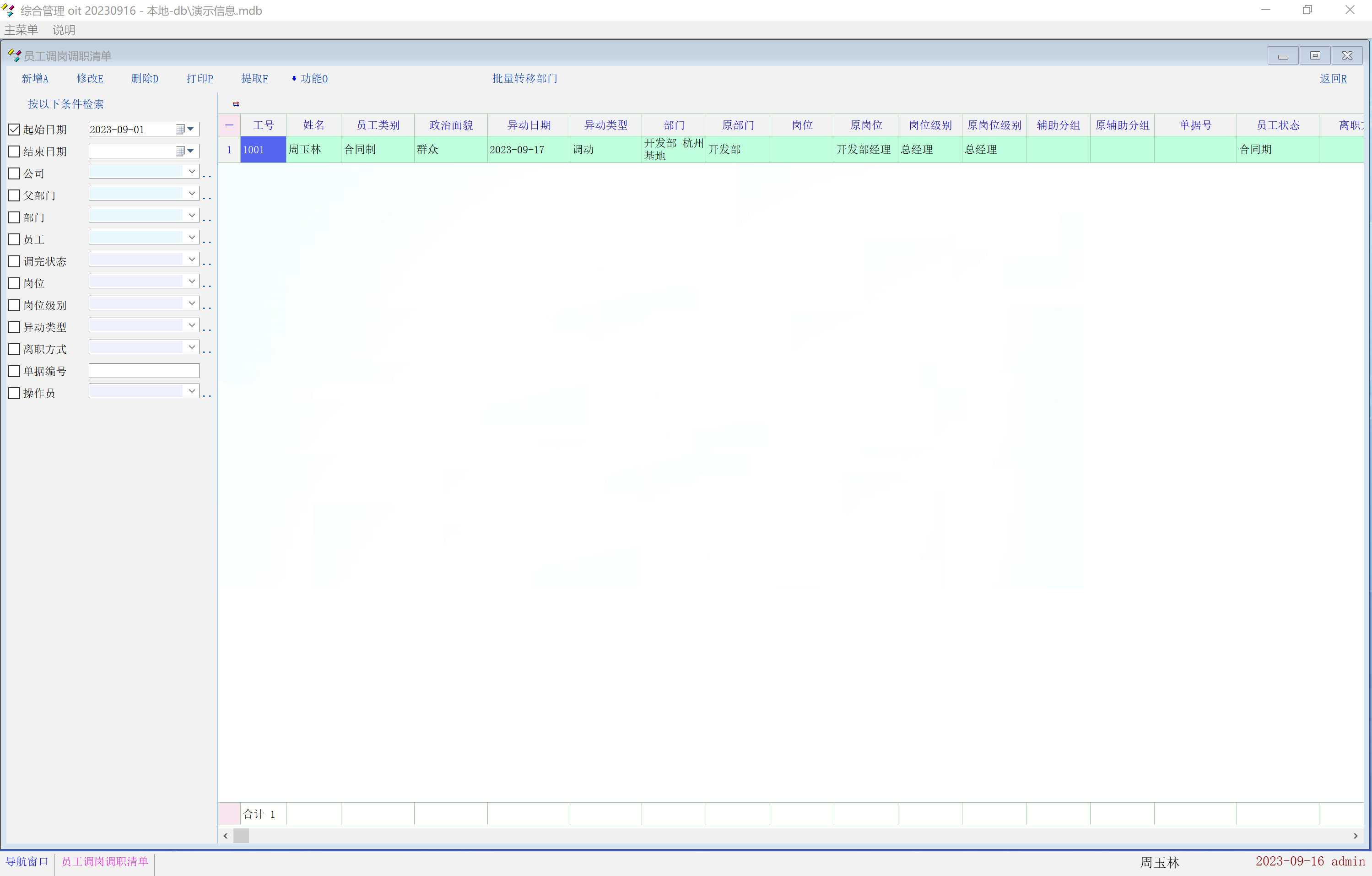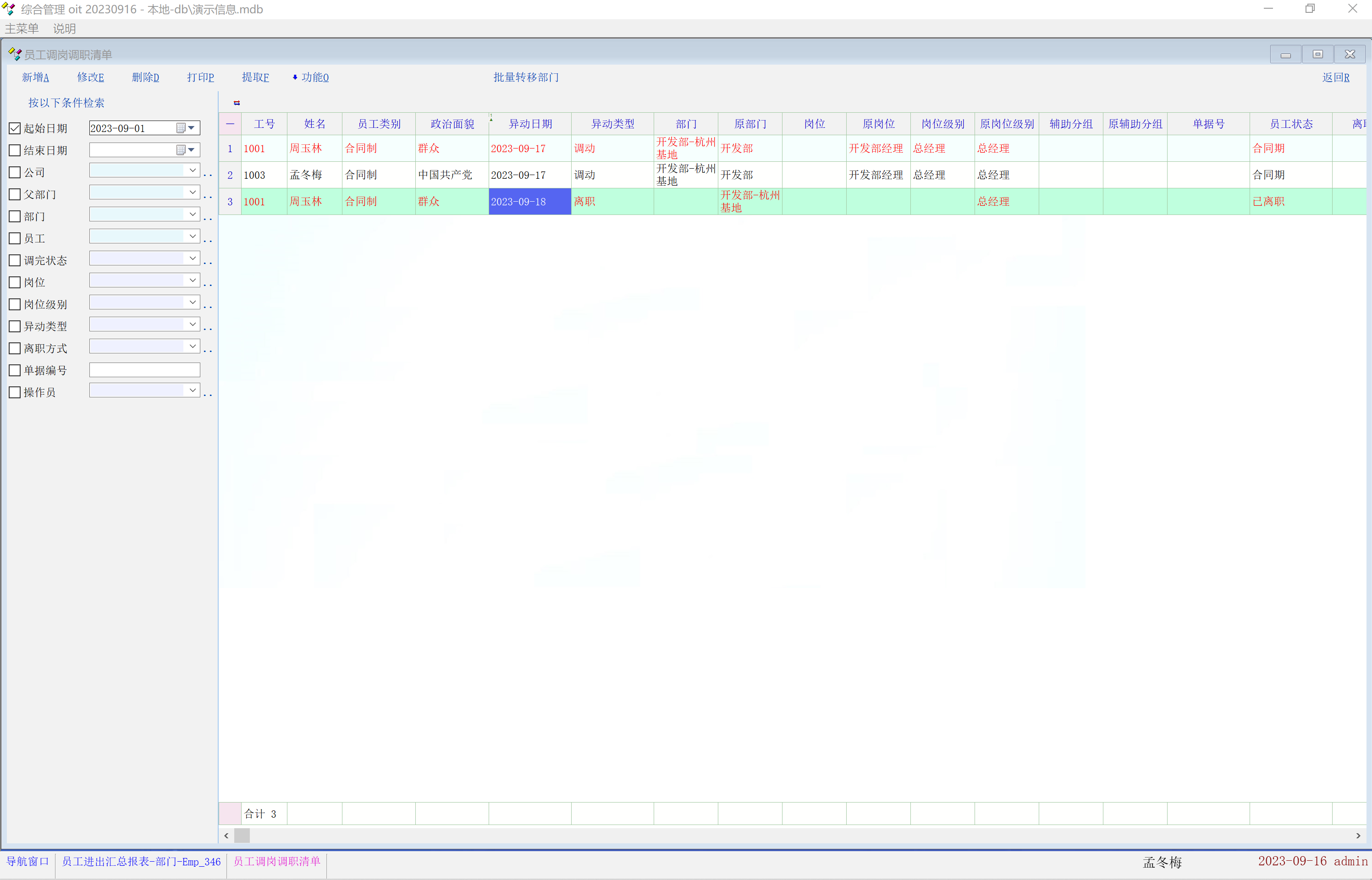 刚进行了测试 发现新版本已经支持员工异动的数据了  但是期初数据不对!如下图:
