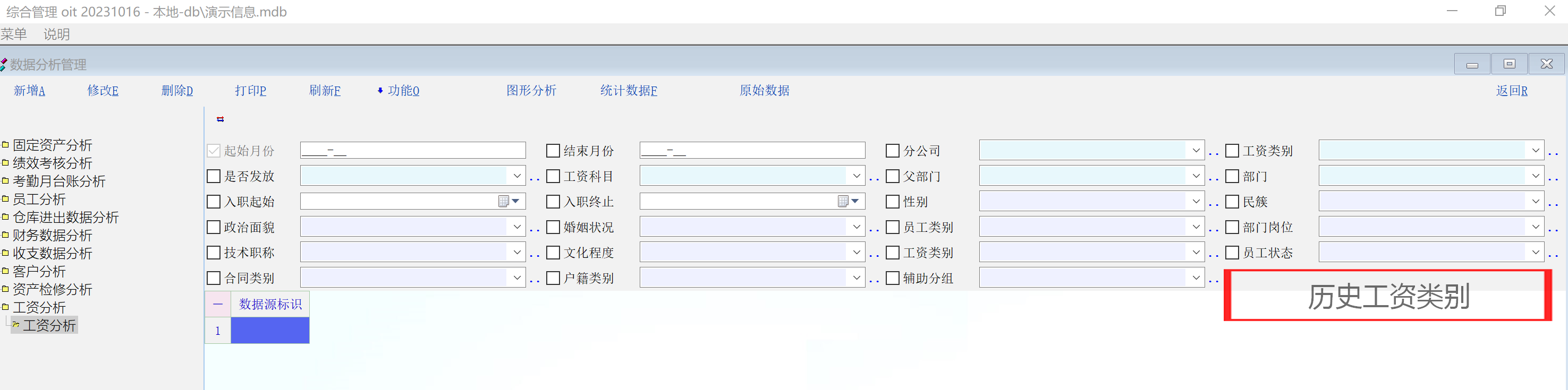 建议限制条件增加员工工资表中历史员工资料信息 !如下图: