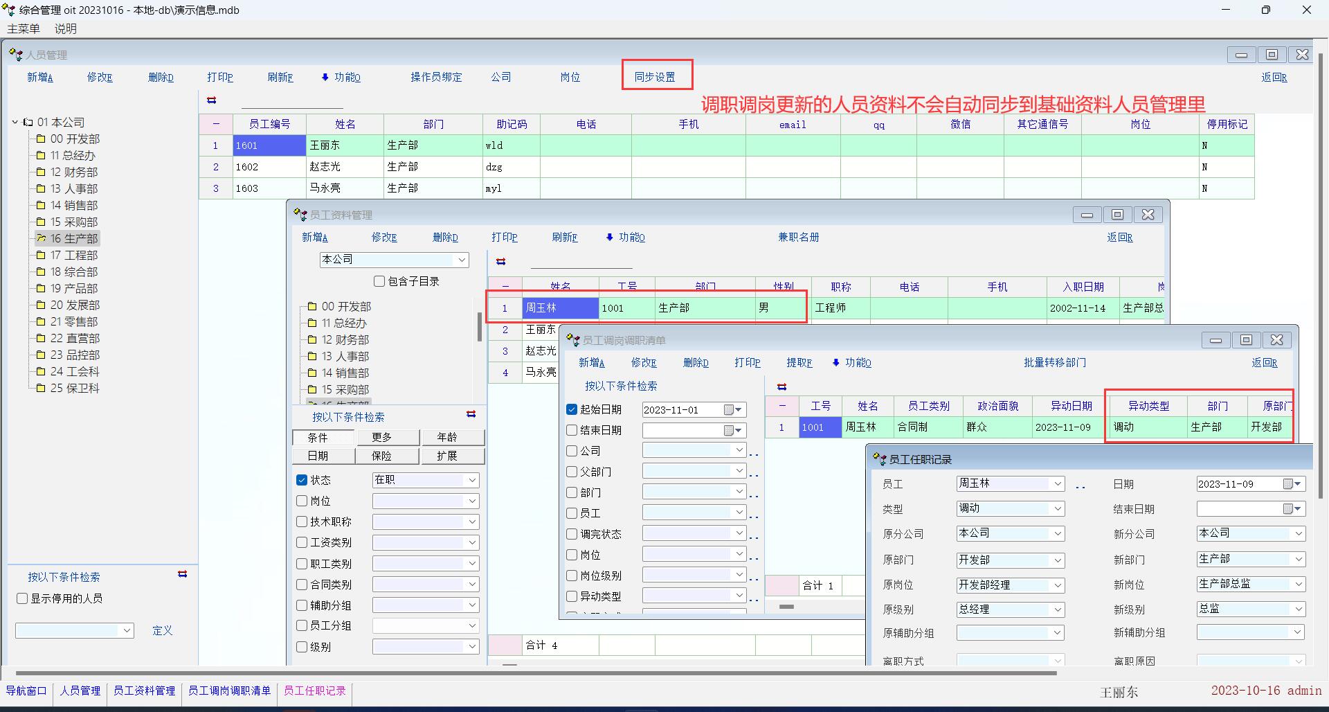 讨论_基础资料--部门人员不会自动同步更新用调职调岗编辑更换公司、部门、岗位的资料_人力资产