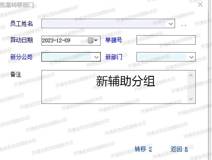 批量转移部门时涉及到员工辅助分组信息的变化,希望能增加新的辅助分组信息!