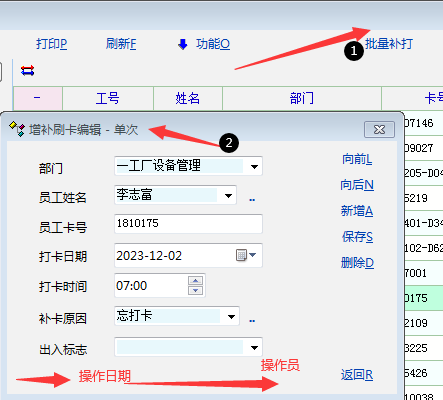 原创_考勤模块--补卡记录里面添加操作日期与操作员_人力资产