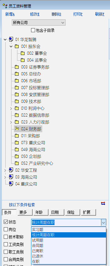 员工资料中设置有员工“在职”状态,但到了员工证件清单模块,在职状态就没有了,具体见附件对比图。