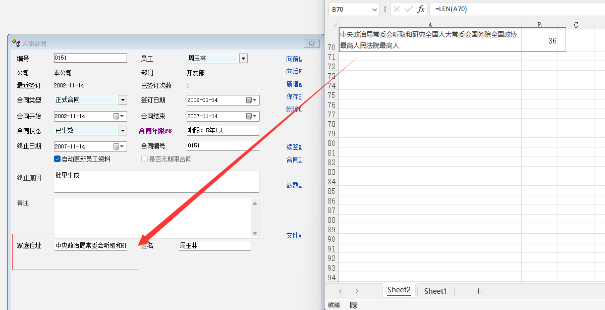 但有个别的员工家庭住址超40个字符的都有