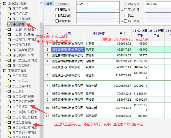 工资报表里面有很多的报表,但没有部门里面的岗位合计报表-----单独的岗位报表有,但是没有部门显示,不知道这个岗位是在哪个部门