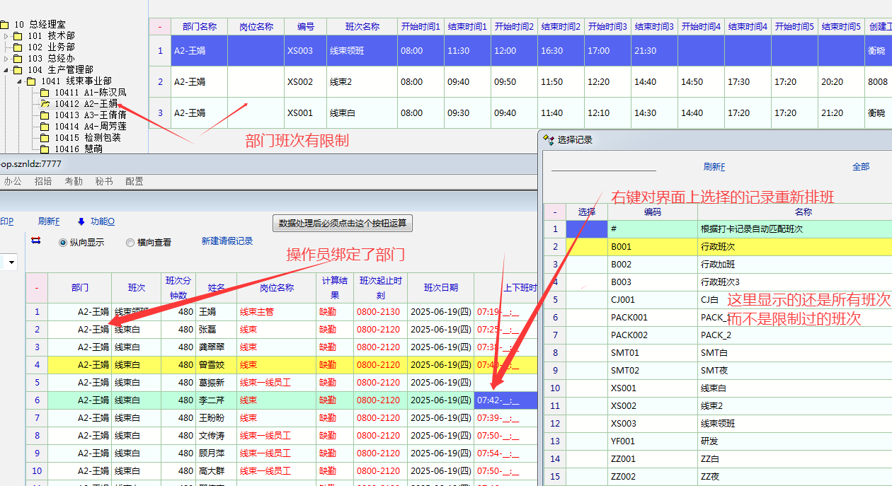 原创_部门班次有限定绑定--考勤日账----右键选择记录进行重新排班---选择班次发现没有限定_人力资产