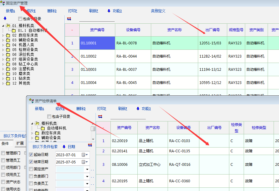 原创_固定资产--资产检修--最新版本不显示这个出厂编号了_人力资产
