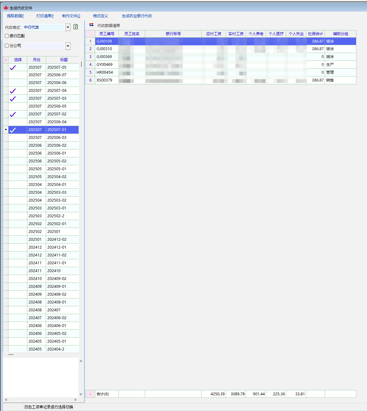 系统中可以比较方便地定义银行代收格式,但是一般来说仅限于系统中已经定义的工资科目,一个月如果存在多份工资单的话(比如员工离职当天要发工资),就可能需要根据多份工资单进行汇总分析。比如我这里就可能会根据员工的分组来汇总某个月的应付工资,随便核对一下支付工资时应扣缴的社保金额。脚本可以增加列,但是使用grid_mark_sum函数无法显示合计数,终究不太方便,又不想因此再专门增加一个平时几乎没什么用的工资科目。所以这里的脚本如果支持这个函数就好了。