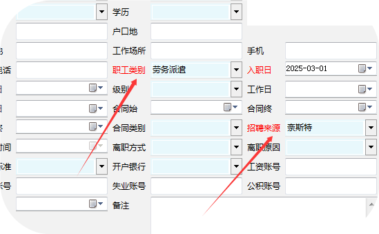 需要在考勤月帐(查询使用)、考勤报表考勤月账里面添加职工类别(区分是合同工还是劳务派遣员工)--招聘来源(有多家劳务派遣公司,需要统计各个劳务派遣员工工时,以便与劳务公司对账合算)--方便统计