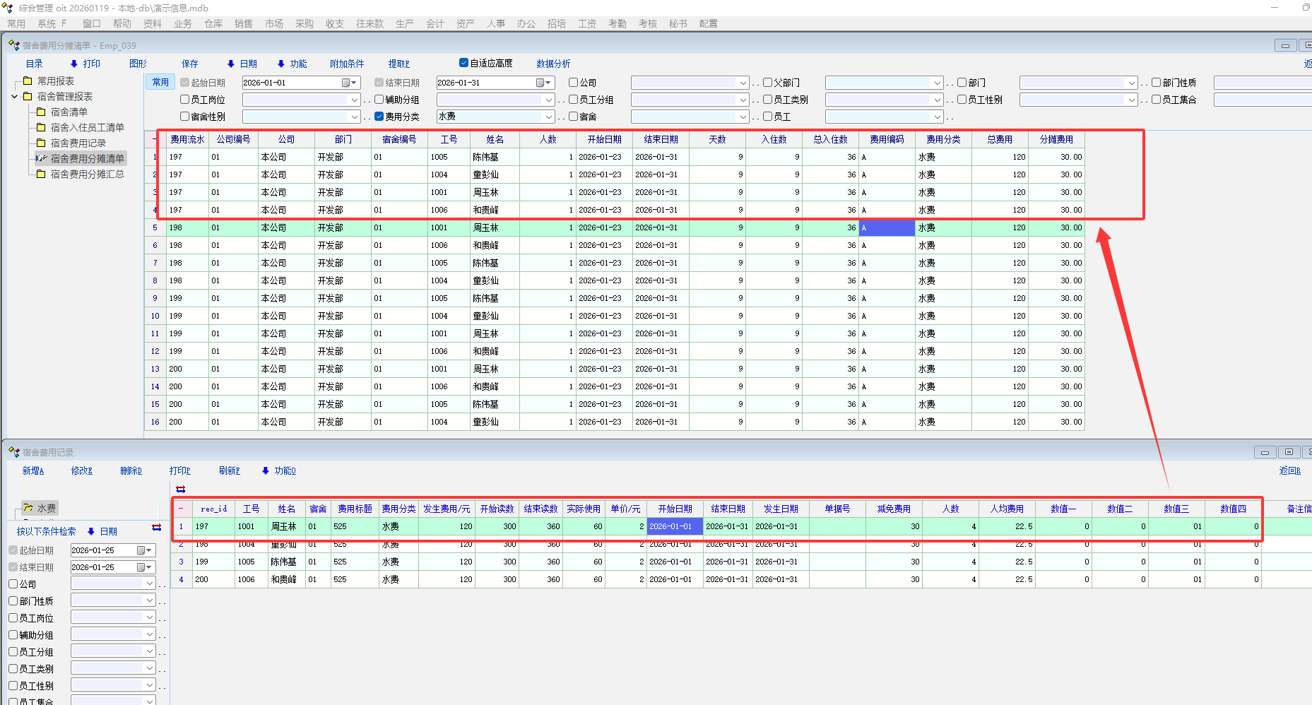 2:现在的费用登记如果以相关员工登记则分摊报表重复出现多条数据