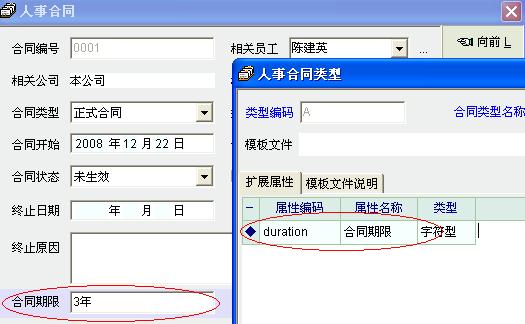 =》合同类型定义里面就有扩展属性。不是人员资料那边的4个扩展