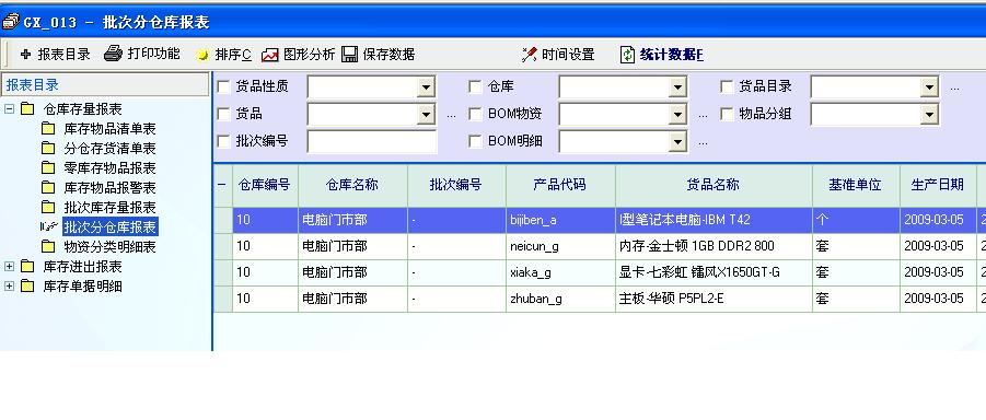 斑竹:我在入库单中录入了批号,到批次分仓库报表中确看不到批次编号了.