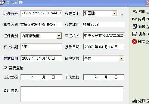 员工证件管理中的“证件状态”没有实际意义,不会随系统日期而自动判断是:有效还是无效?