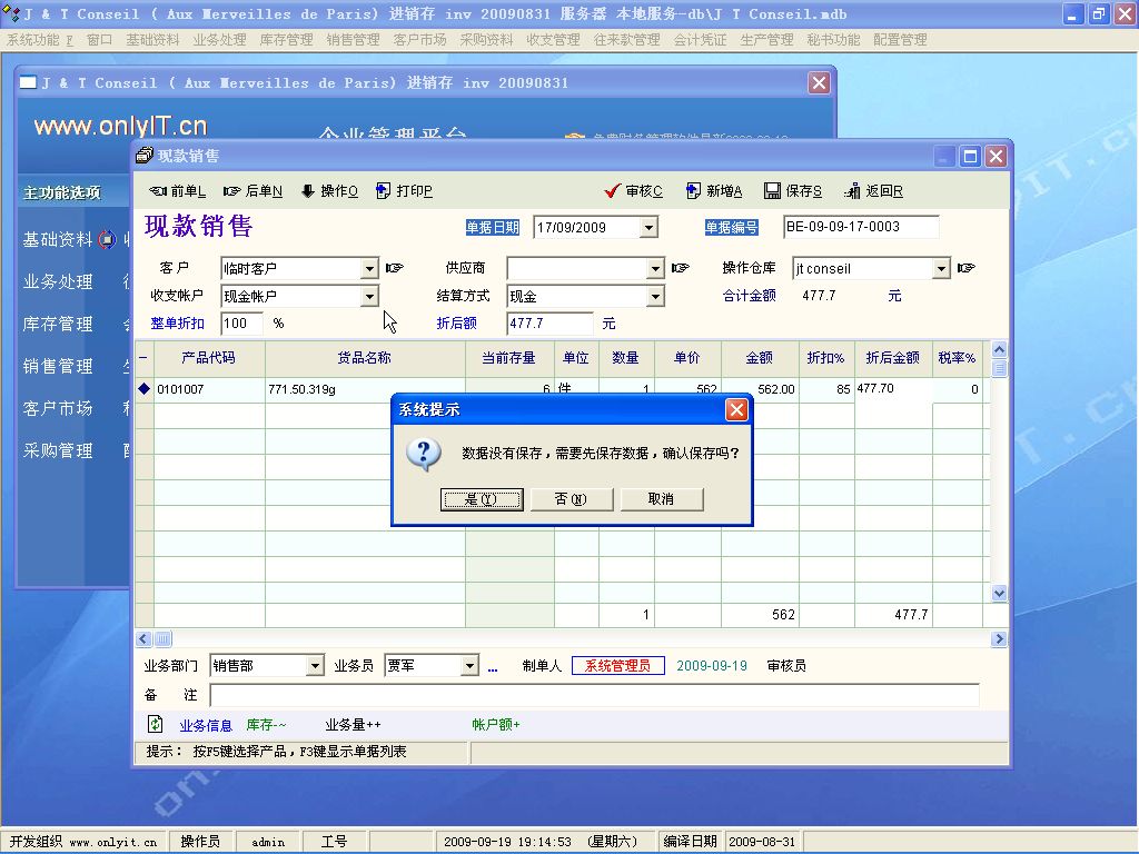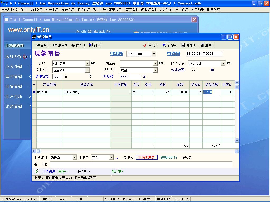 我用现款销售加入产品和折扣价等等得出总价后,保存,审核,但系统给我的回复是:  查询值的数目与目标字段中的数目不同,以致我没法再继续。