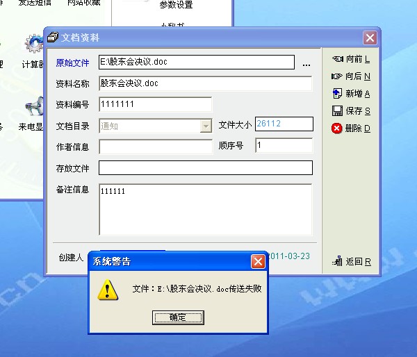 秘书模块中的文档管理上传文档失败,请解决。