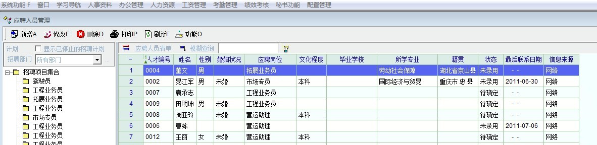 待确定的员工 一般50%才会给公司录用的,如果待定的话这也有一个期限的,你全部输入进去那会使系统变胖的。