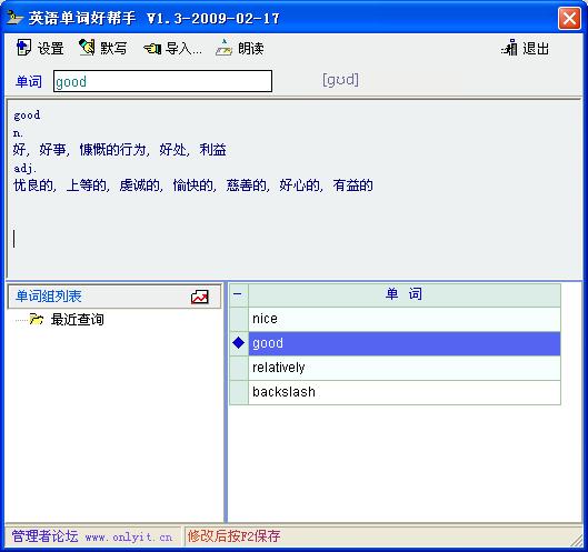 盼望很久了,一直希望有那么一个软件,可以把不熟悉的单词查询后自动存放起来,供不断复习。现在终于有了这么一个软件,感谢onlyit的工程师们。