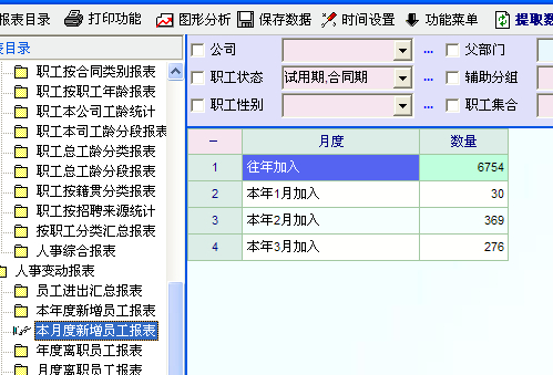 能不能像“日期提醒”里面的“该年新入职人数”和“该年离职人数”,查看该月入职和离职人数呢,并有明细的员工名单。 统计报表里面虽然有 “本月新增员工报表” 但是只有一个数据而没有人员明细。