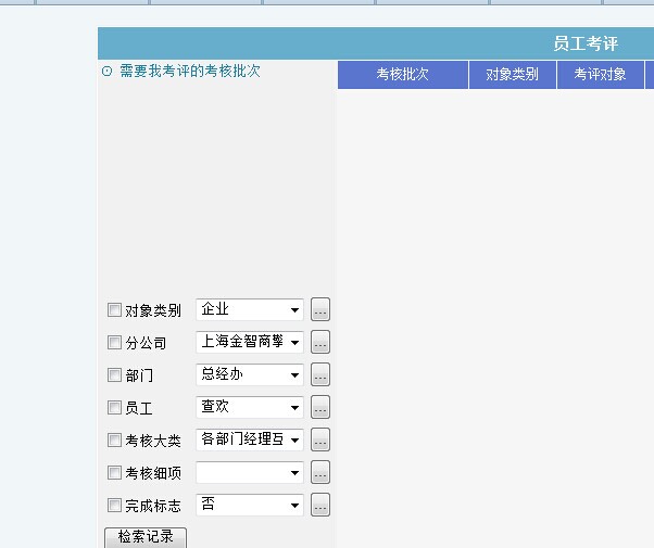 目前是限制了只能检索自己参与考评的记录