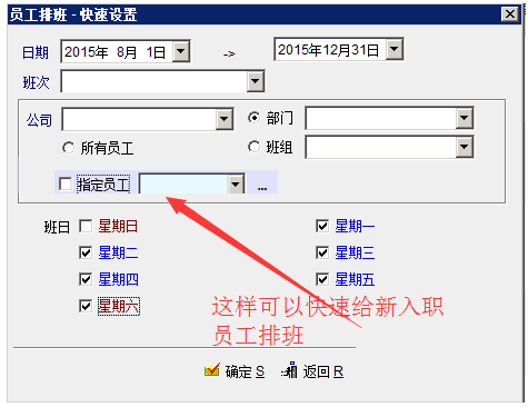 现在的排班除了设自动排班外,按天排班。建议如下图,增加可选择员工,方便快捷按人排班