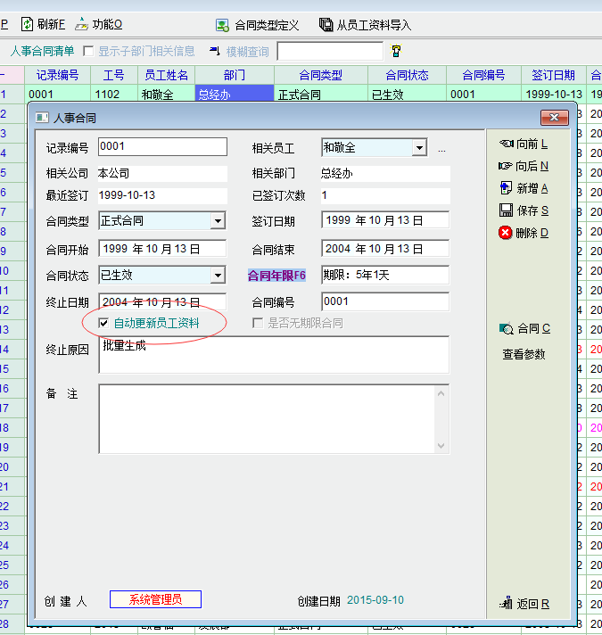 先建员工资料后录合同,顺序别反了呀