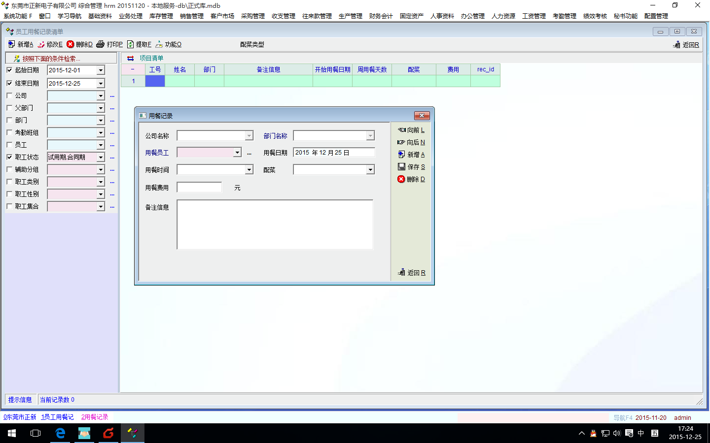 就餐确实是,形同虚设,非常不合实际。只适用于那种几个人到十几人的小公司,天天派个文员输入的。就餐实际功能是没有达成,有的企业有干部餐,可能是根据级别来报餐,有的企业是包吃住,可以全部就餐,有的工厂,员工就餐要扣费,公司再补助一点,我们公司就是这样,餐标11元,员工承担7元,公司承担4元。就餐模式是半自由式,可以这个月在食堂申请就餐,也可不申请就餐,就餐根据级别不同,可以一周选择就餐5天、6天、或7天,法定假(全年11天),可以自由申请,期间还有公司让食堂安排加餐。加费用根据当天就餐人员数量。等等,就餐报表,食堂还要承担水电费等。有的企业可能是自已做的食堂,不是外包的,那可能还要计算成本,比如买米、买油、佐料等共花费多少。