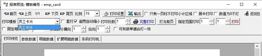 自己设计了几个模板,在员工资料打印里选不上,只有一个员工卡片,哪里设置不对吗?