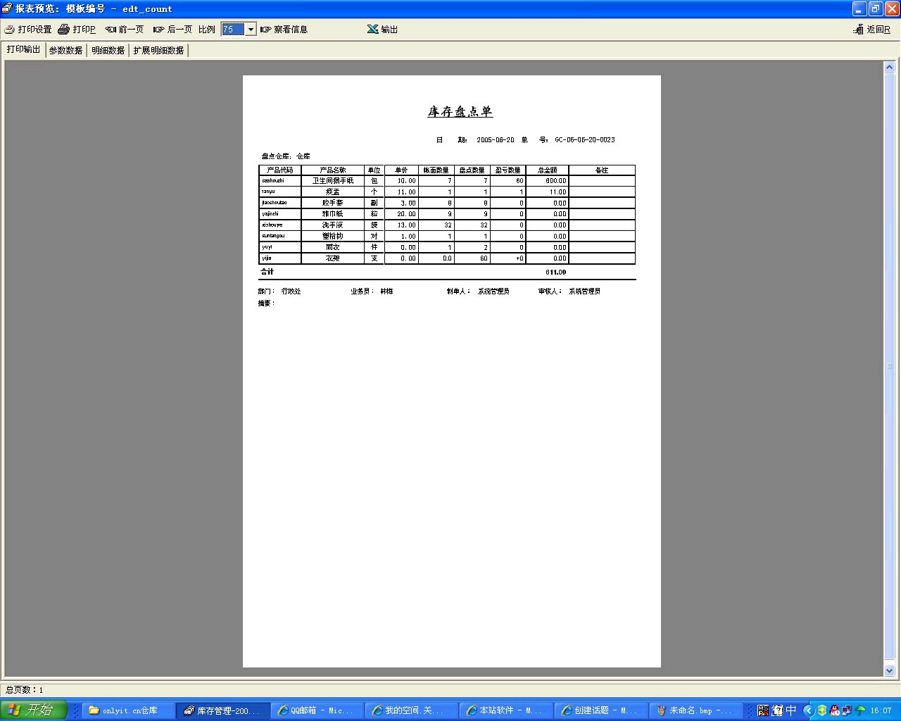 我也重新下载了20080415版本的库存管理软件,并用演示库重新试了一下,也存在这样的问题。而且我刚刚才发现,0415版本不能从演示库切换到正式库,而0226版本可以,还有导入打印模版功能我没找到。